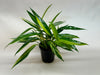- Description: A striking trailing houseplant with narrow, elongated green leaves highlighted by silvery-gray streaks and subtle variegation. The foliage has a smooth, slightly glossy texture, and the silver markings become more pronounced in brighter light. It has a graceful vining habit, making it ideal for shelves, hanging baskets, or climbing supports.