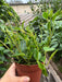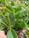 - Description: Peperomia 'Angulata' a trailing plant with succulent-like leaves and thin, red stems. The leaves are dark green with distinct, striated patterns that resemble a beetle's shell, giving it its common name.